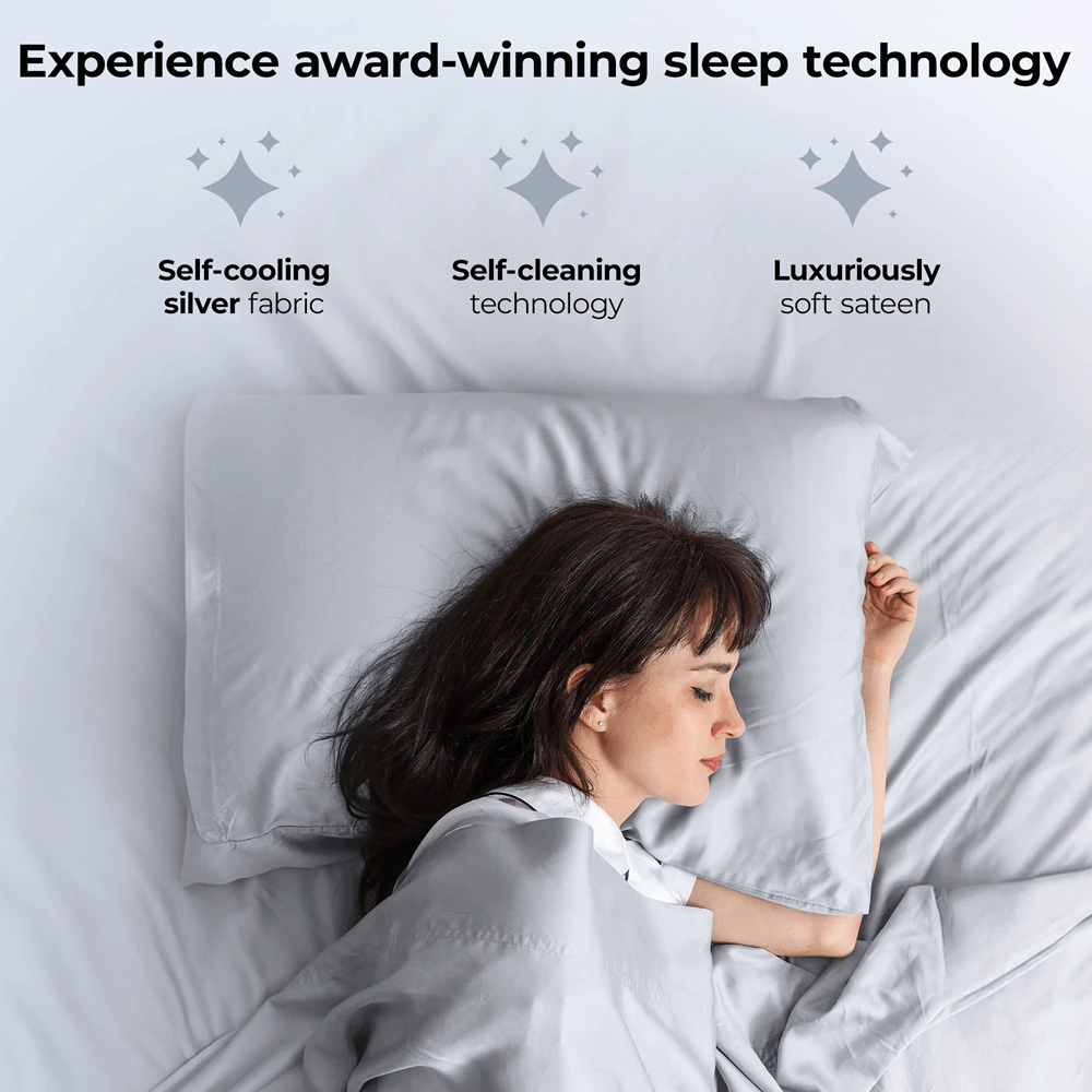 Experience luxuriously soft, self-cooling sheets with self-cleaning Silvery Technology™ designed to help keep you cool, fresh, and comfortable all night.