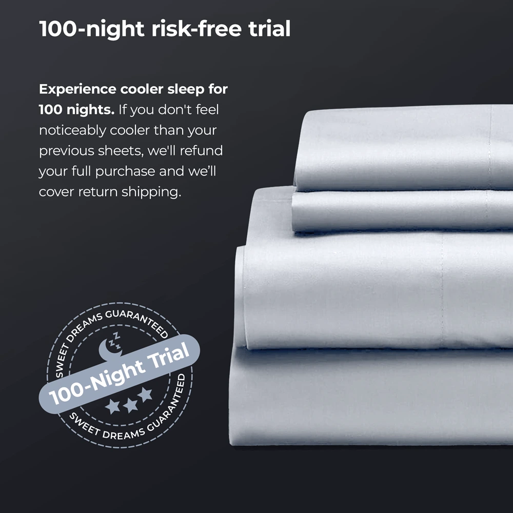 Try them risk-free for 100 nights and experience the difference in cooling comfort, softness, and freshness. If you're not completely satisfied, we'll refund your entire purchase and cover return shipping within the U.S. No hassle. No complicated forms.