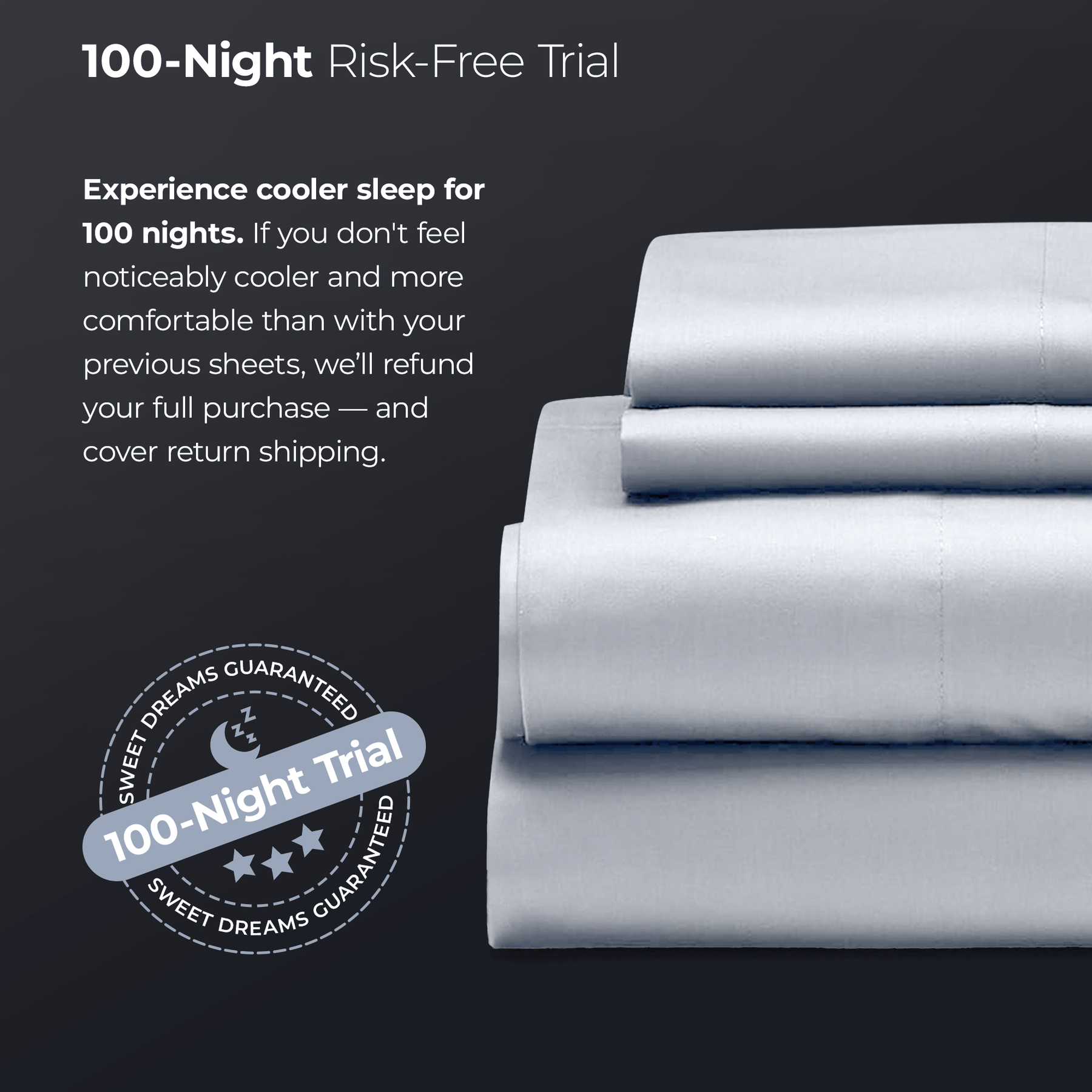 Try them risk-free for 100 nights and experience the difference in cooling comfort, softness, and freshness. If you don’t wake up feeling cooler, more refreshed, and completely in love with your new sheets, we’ll refund your entire purchase—AND cover return shipping within the U.S.