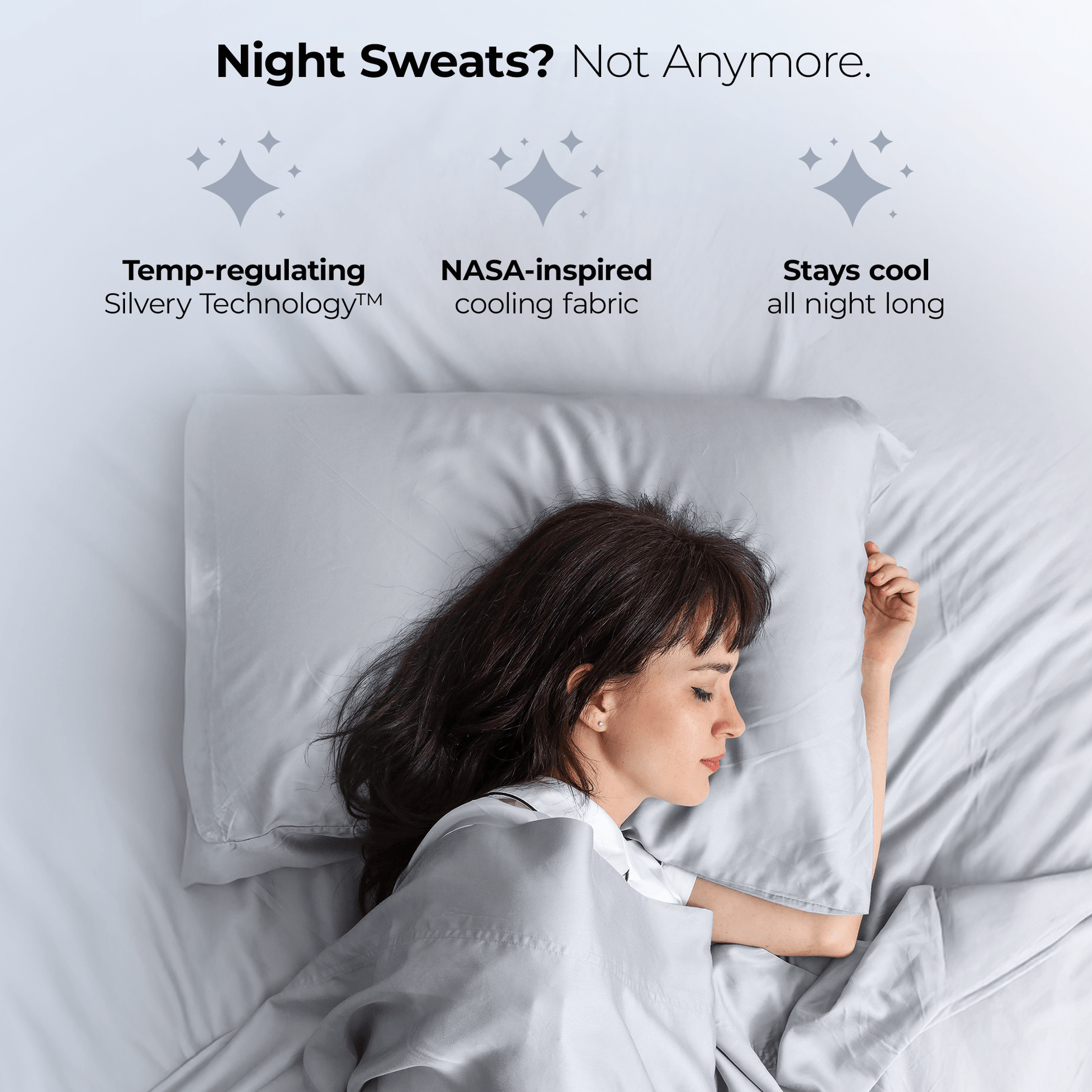 Silvery’s silver-infused fibers actively pull heat away from your body and regulate temperature—so hot sleepers stay cool, dry, and undisturbed all night long.