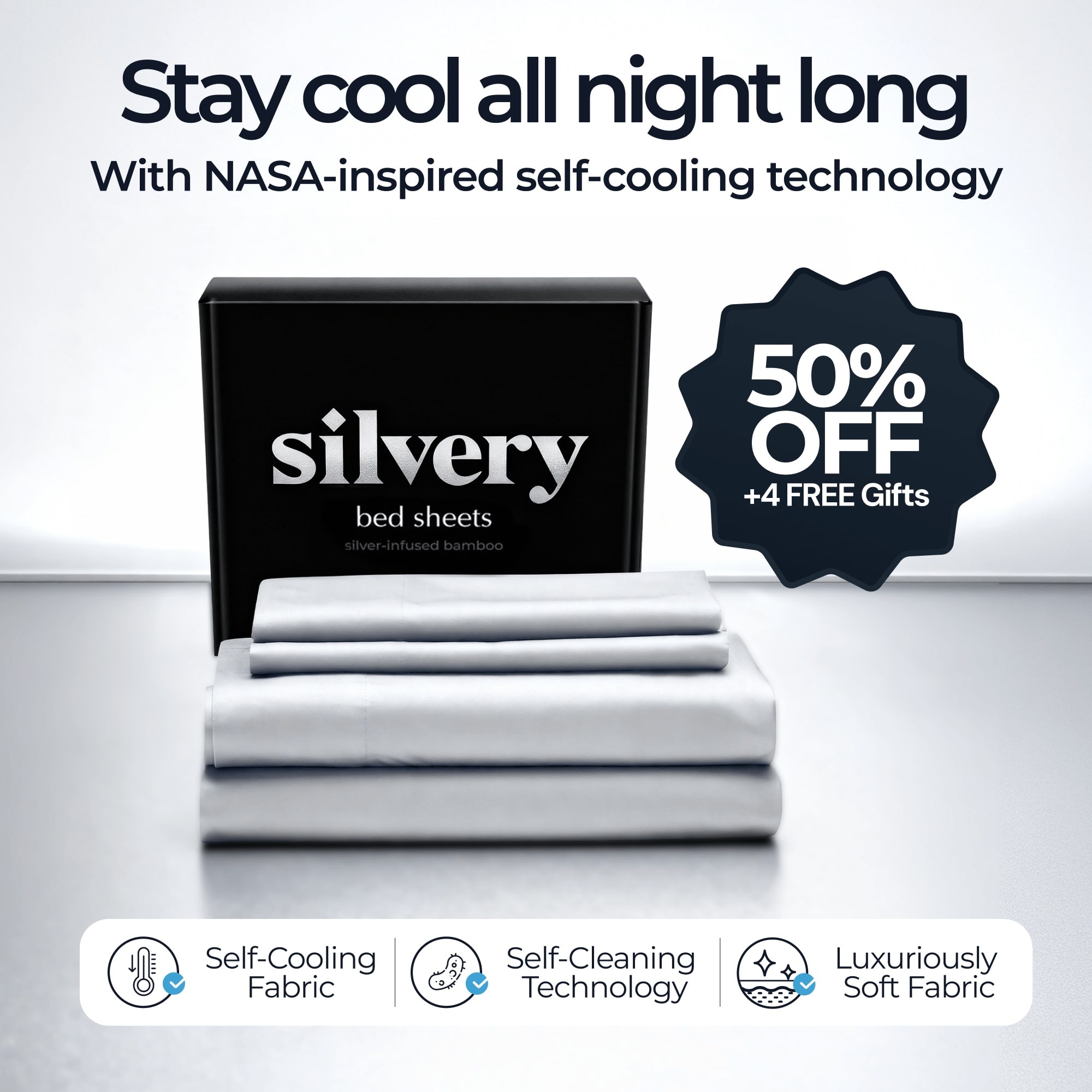 Many women experience night sweats and hot flashes during menopause, creating a cycle where trapped body heat raises your temperature, leading to excessive sweating that soaks into the fabric—worsening discomfort and disrupting sleep. Silvery Sheets are designed to break this cycle with ultra-thin, breathable fibers that wick away moisture and allow continuous airflow, preventing heat buildup. Infused with real silver, these sheets actively regulate temperature by pulling heat away from your body rather than trapping it. The antibacterial properties also help keep your bedding fresher for longer. Whether you're experiencing mild discomfort or frequent overheating, these sheets help maintain a cool, dry, and comfortable sleep surface—night after night.